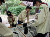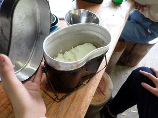 | 飯盒の使い方、水加減、火のおこし方、炊き方、片付け方を学ぶ | ||
