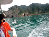 | 日本海の荒波の浸食でできた奇岩、岩礁の景観が広がります ウミネコのえさやりに大興奮でした | |||||