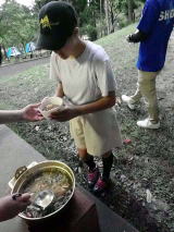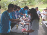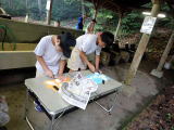 | 調理台も持ち込み 豚汁の準備 | かまども慣れました | 炊き込みご飯 | 豚 汁 | |