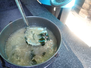 | 健少豚丼 ・ わかめスープ 完食! |