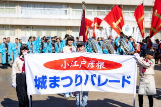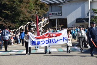 | 城まつりパレードの横断幕と彦根健少活動期が先導しました | |